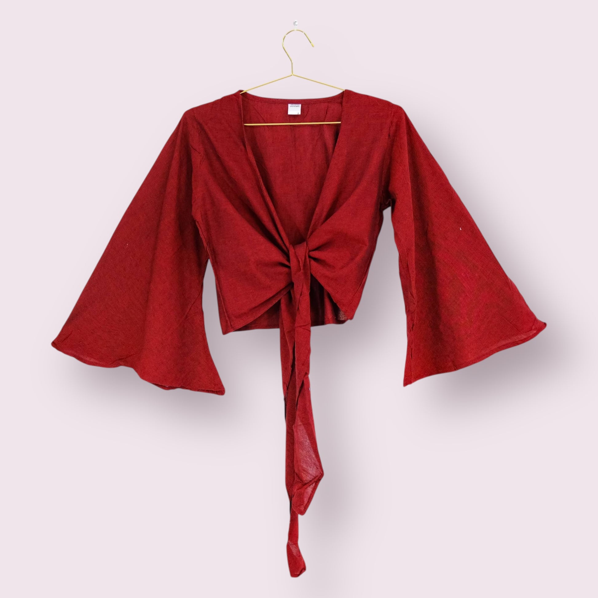 Red Bamboo Cotton Solid Wrap Top